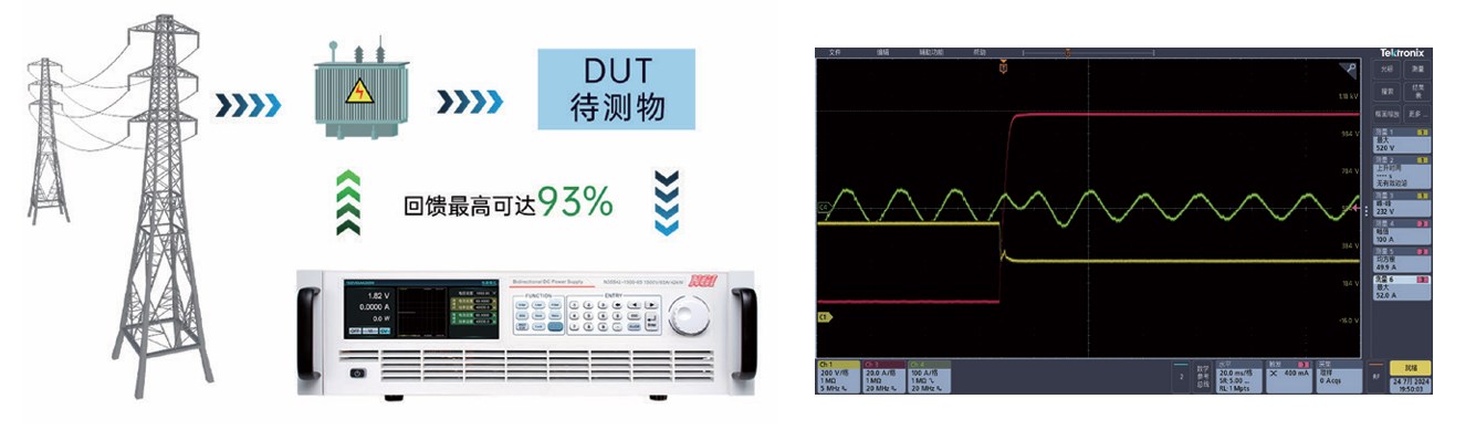 在纯负载模式下,N35500既能实现对外提供功率,又可以吸收功率,并将电能返回至电网,回馈效率高达93%,可广泛适用于锂电池、UPS、BOBC等设备测试。
