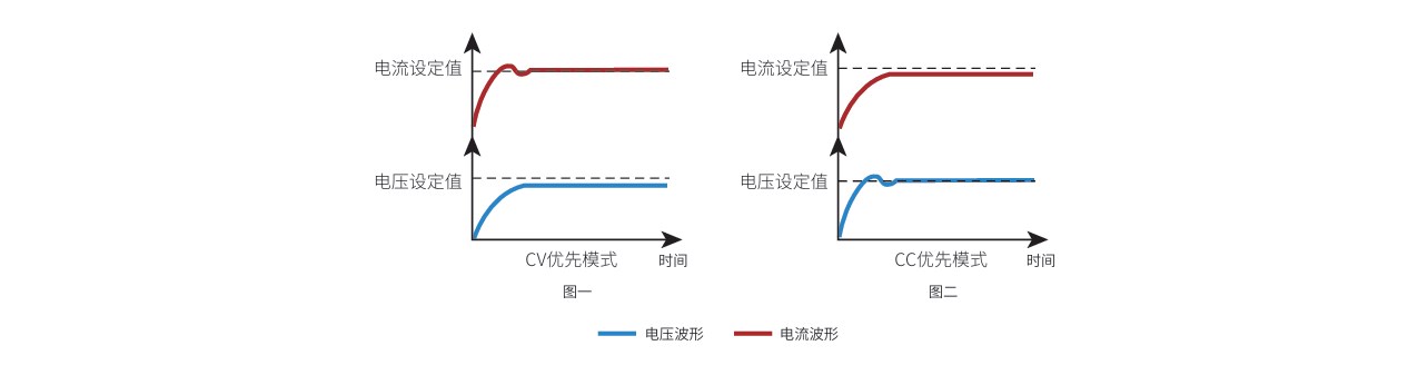 如图一, 当待测组件在测试过程中需要减少电压过冲的情况下,如给DC-DC电源模块供电时,应使用电压优先模式以便获得快速而又平稳的上升电压。