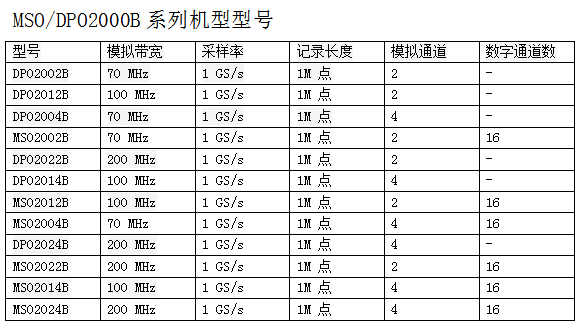 主要参数:模拟宽带70 MHz - 200 MHz;模拟通道2-4;采样率1 GS/s