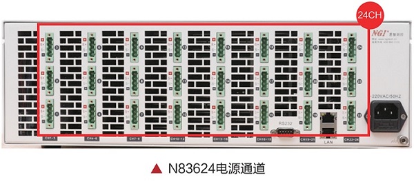 N83624在19英寸3U机箱内集成了高达24个可串联的电源通道,为BMS、CMS及类似大规模高密度生产等场景下的ATE测试系统提供了极为紧凑的解决方案。