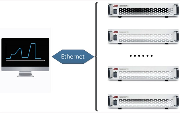 当需要多串电池芯时,可多台电池模拟器多通道串联使用,使用者亦可透过Ethernet标准界面进行远端控制及其他自动测试应用。多通道批量操作功能,各通道亦可分别显示数据及曲线图表,并提供数据分析与报表功能。