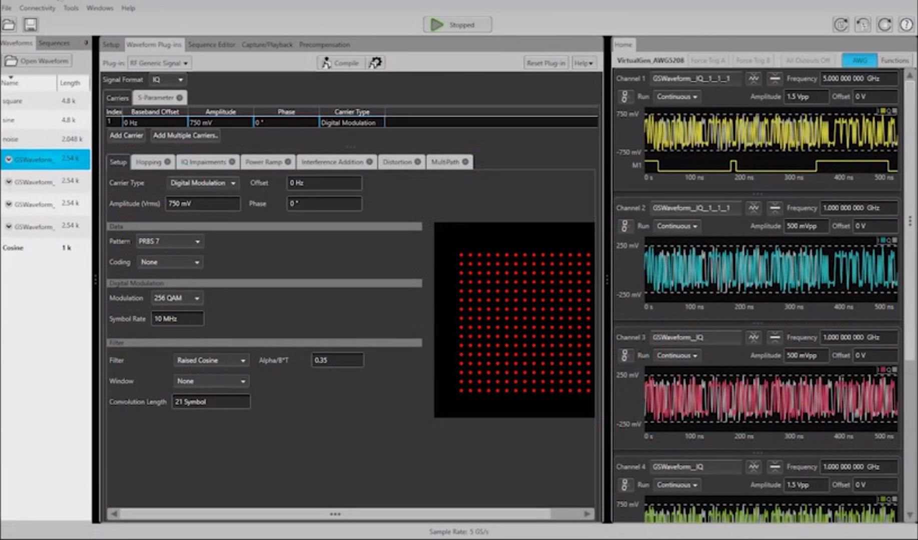 SourceXpress 环境在 PC 上运行,模拟 AWG5200 的原有固件。 配合插件工作时,您可以在插件之间轻松又方便地切换。 插件简化了生成复杂射频环境信号和调制雷达脉冲的过程,帮助您更快地迭代设计。