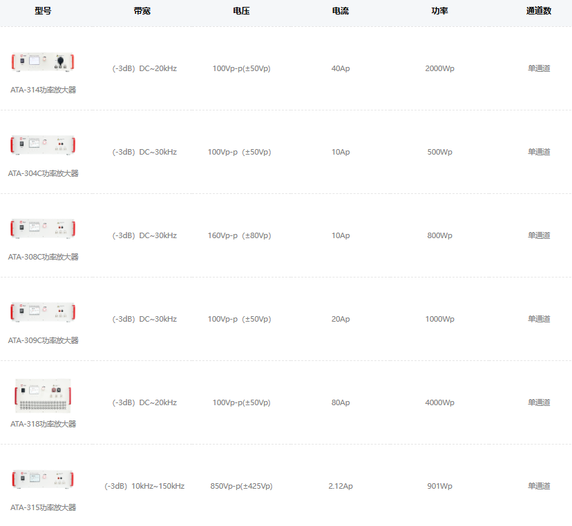 ATA-300系列功率放大器是一款理想的可放大交、直流信号的功率放大器。******输出功率4000Wp,可以驱动功率型负载。电压增益数控可调,一键保存常用设置,为您提供了方便简洁的操作选择,可与主流的信号发生器配套使用,实现信号的放大。